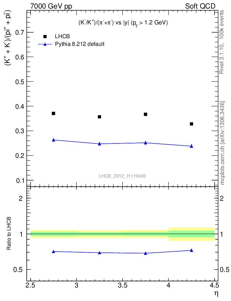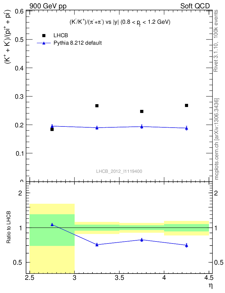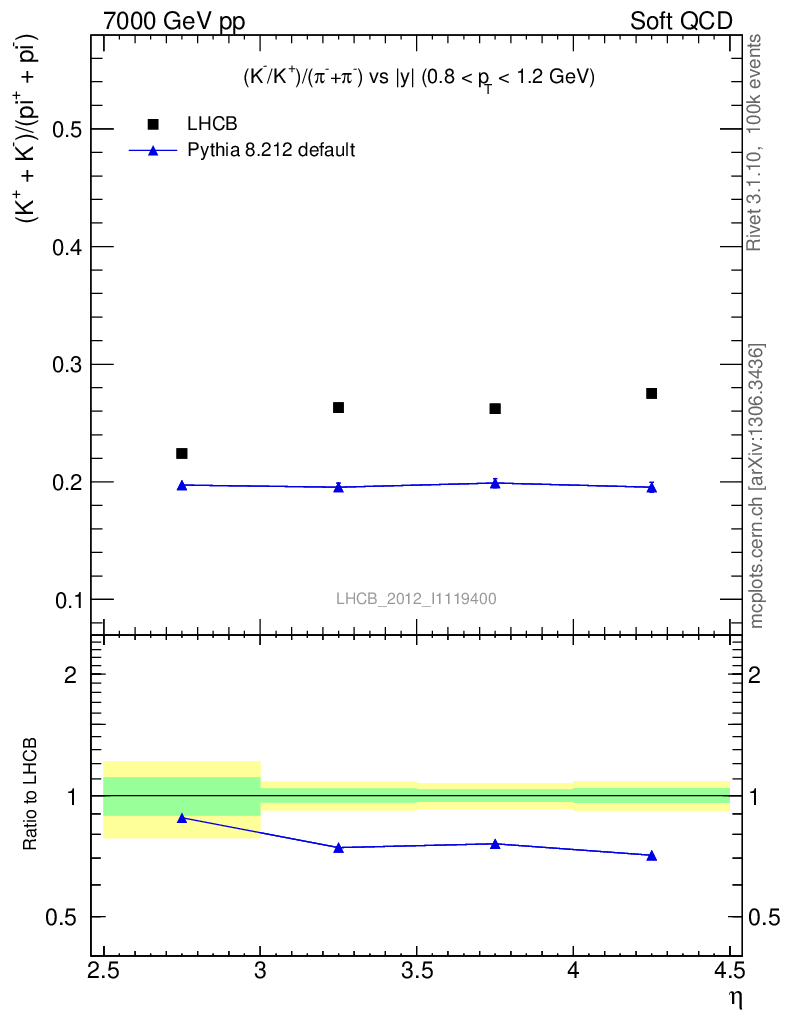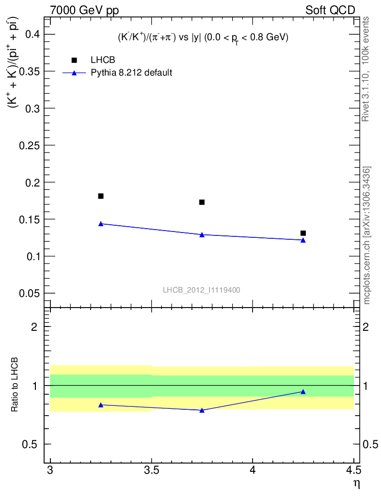 Soft QCD (inelastic) : Identified Particles : Ratios : (K-+K+)/(π-+π+) vs |y|