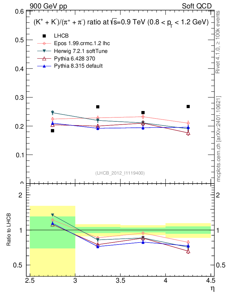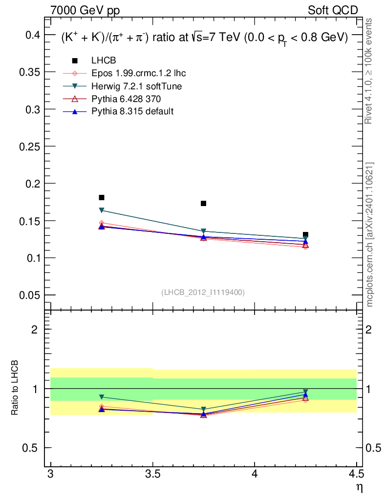 Soft QCD (inelastic) : Identified Particles : Ratios : (K-+K+)/(π-+π+) vs |y|