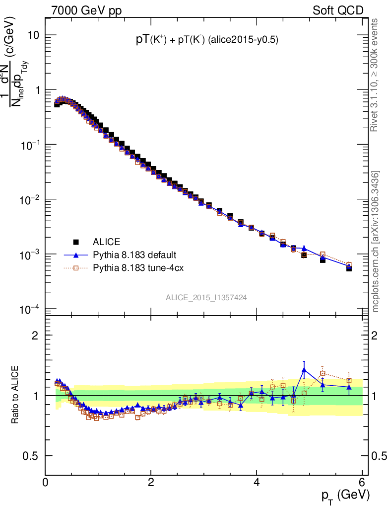 Soft QCD (inelastic) : Identified Particles : pT : K+ + K-