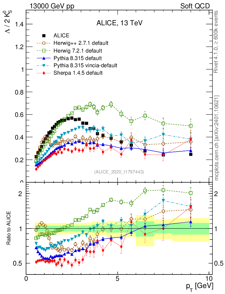 Soft QCD (inelastic) : Identified Particles : Ratios : Λ/K0S vs pT