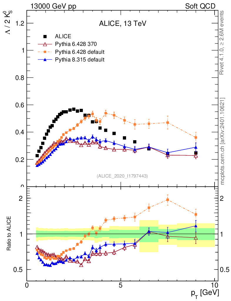 Soft QCD (inelastic) : Identified Particles : Ratios : Λ/K0S vs pT