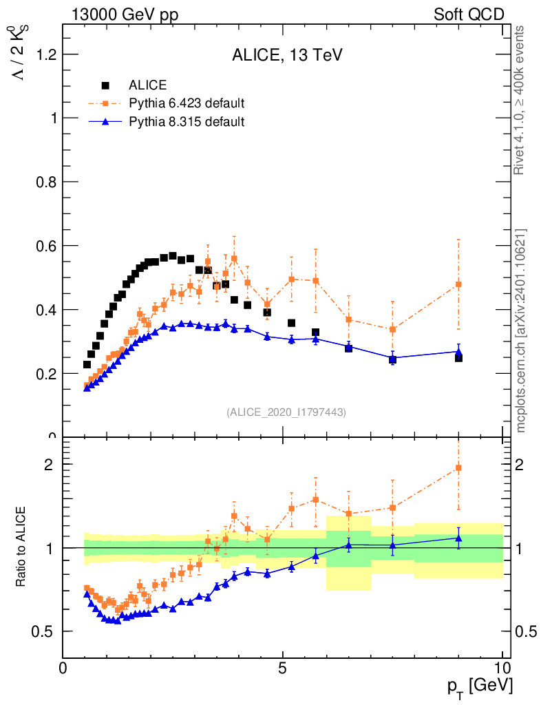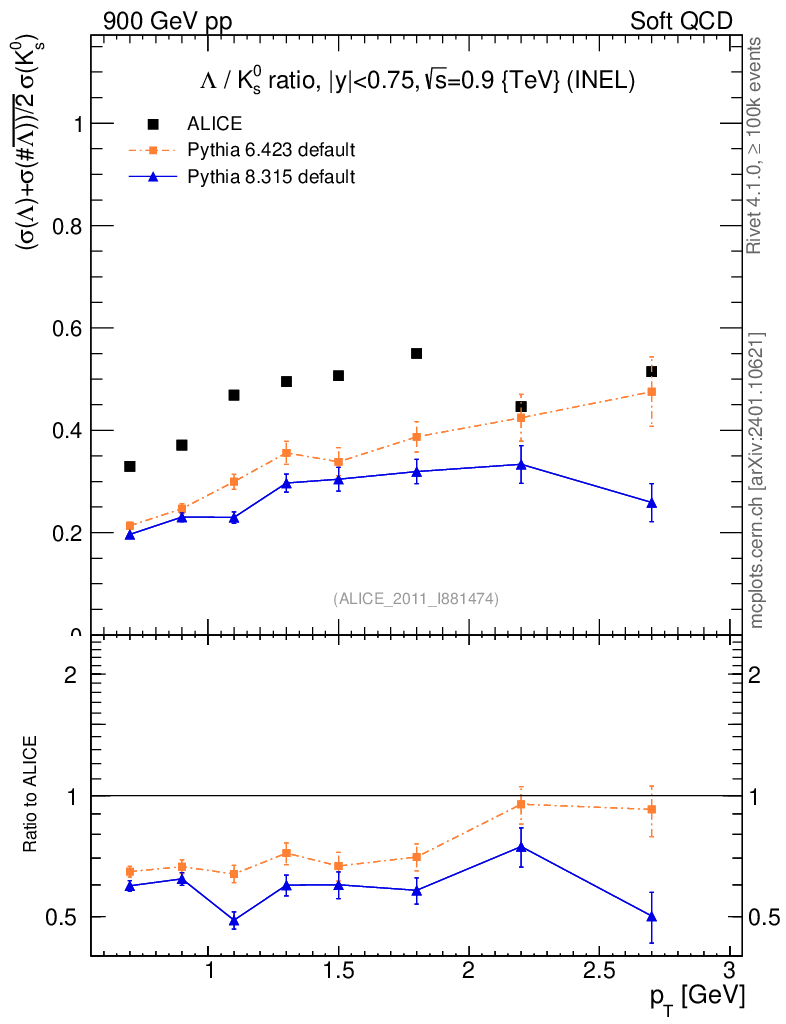 Soft QCD (inelastic) : Identified Particles : Ratios : Λ/K0S vs pT