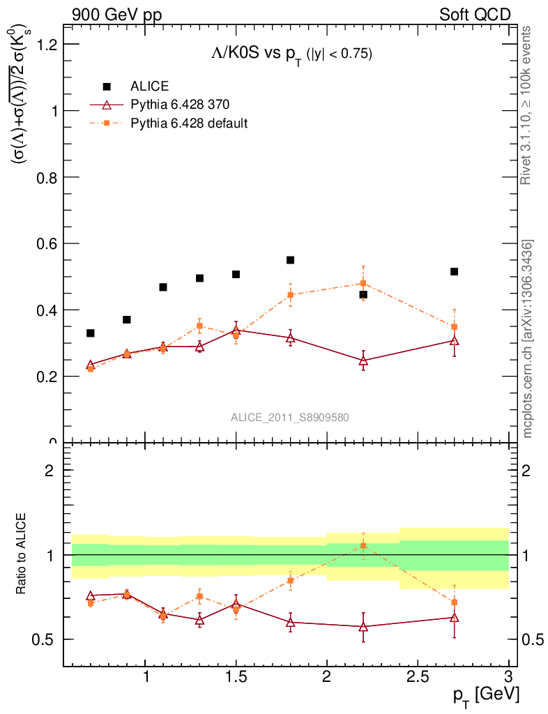 Soft QCD (inelastic) : Identified Particles : Ratios : Λ/K0S vs pT