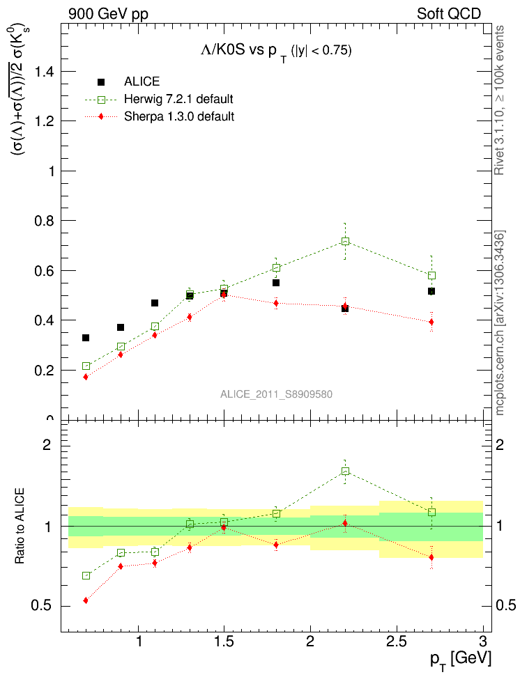 Soft QCD (inelastic) : Identified Particles : Ratios : Λ/K0S vs pT