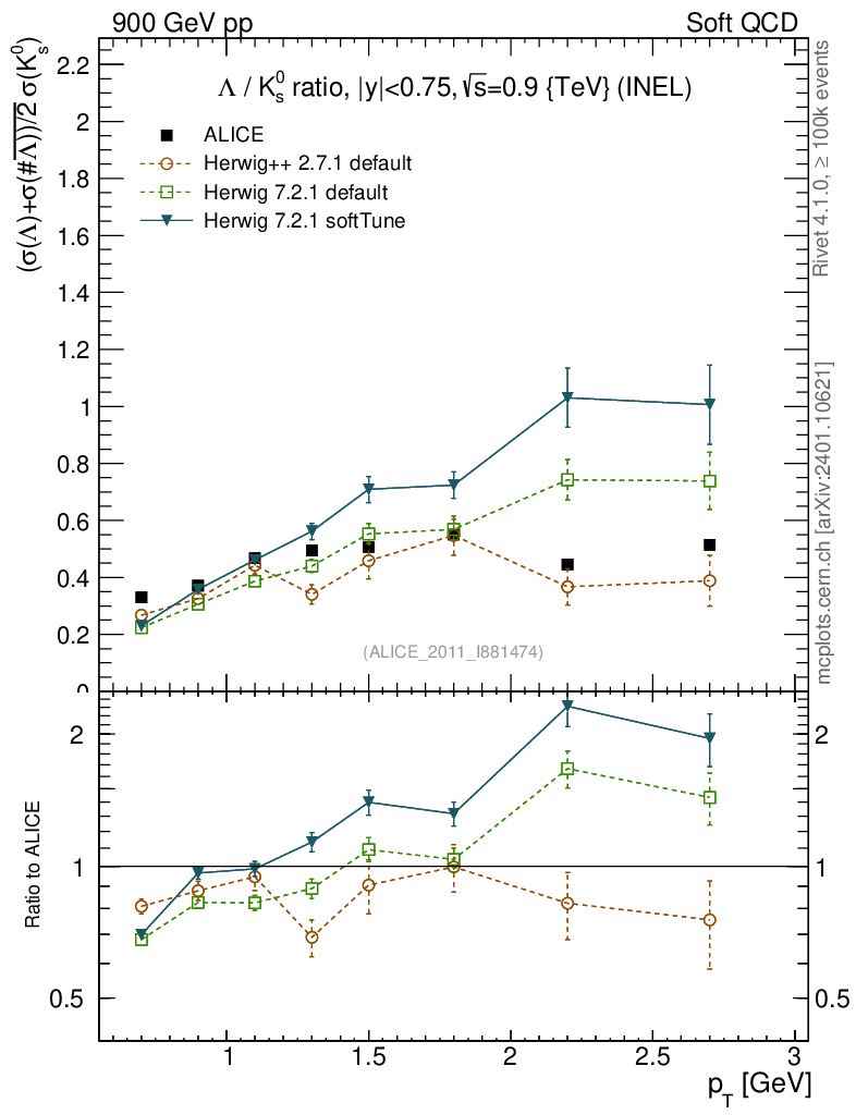 Soft QCD (inelastic) : Identified Particles : Ratios : Λ/K0S vs pT