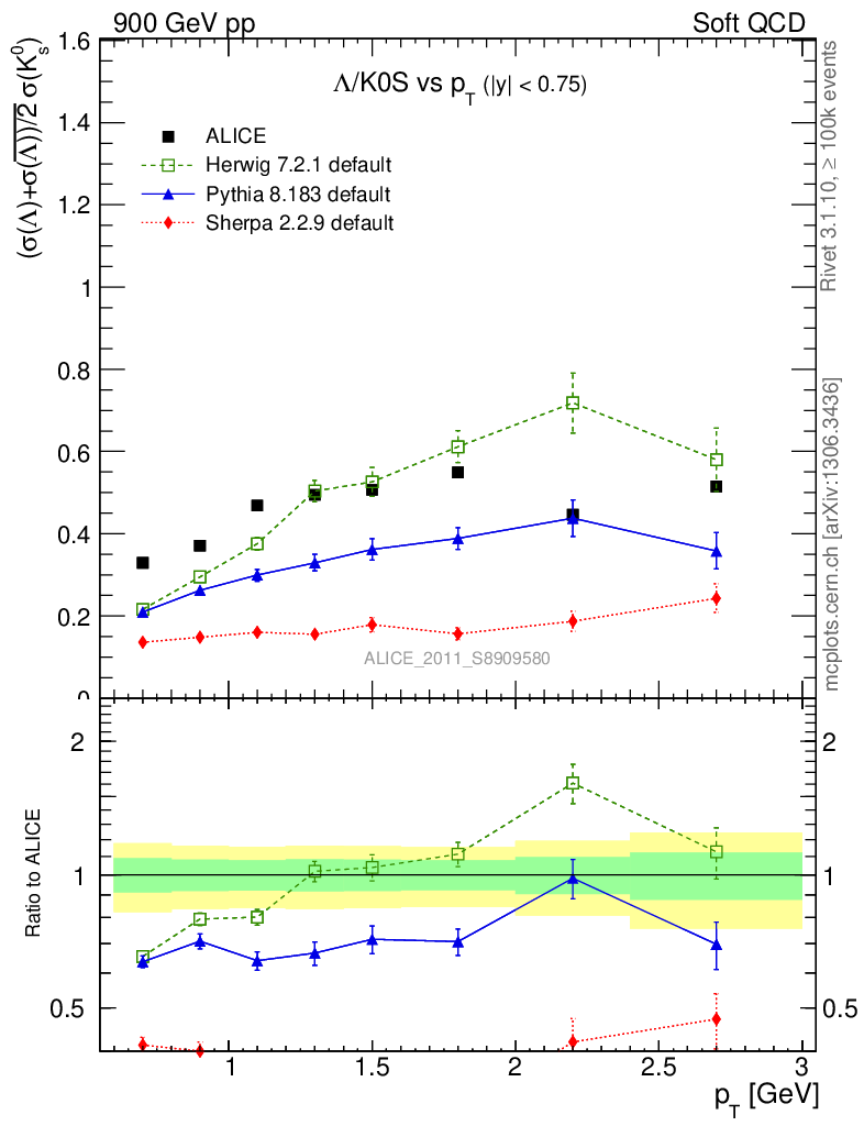 Soft QCD (inelastic) : Identified Particles : Ratios : Λ/K0S vs pT