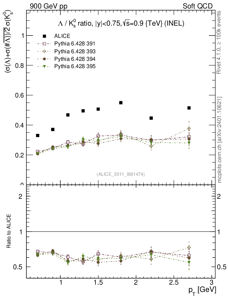 Soft QCD (inelastic) : Identified Particles : Ratios : Λ/K0S vs pT