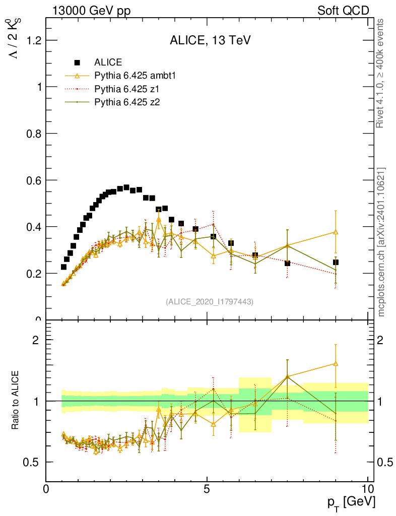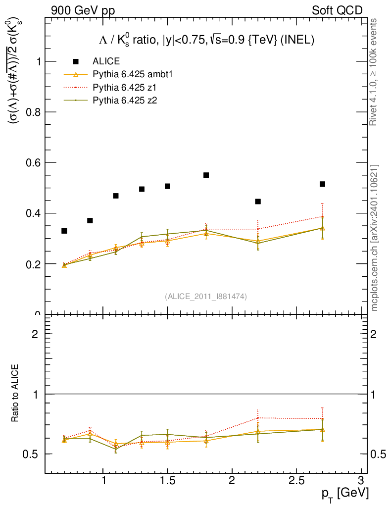 Soft QCD (inelastic) : Identified Particles : Ratios : Λ/K0S vs pT