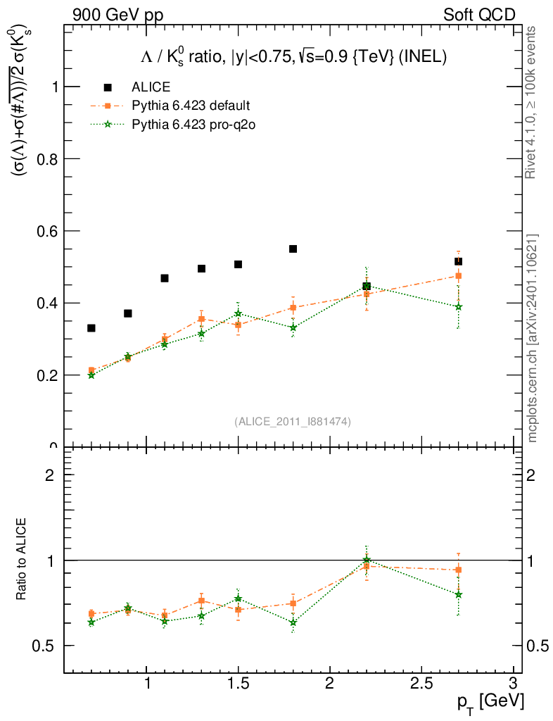Soft QCD (inelastic) : Identified Particles : Ratios : Λ/K0S vs pT