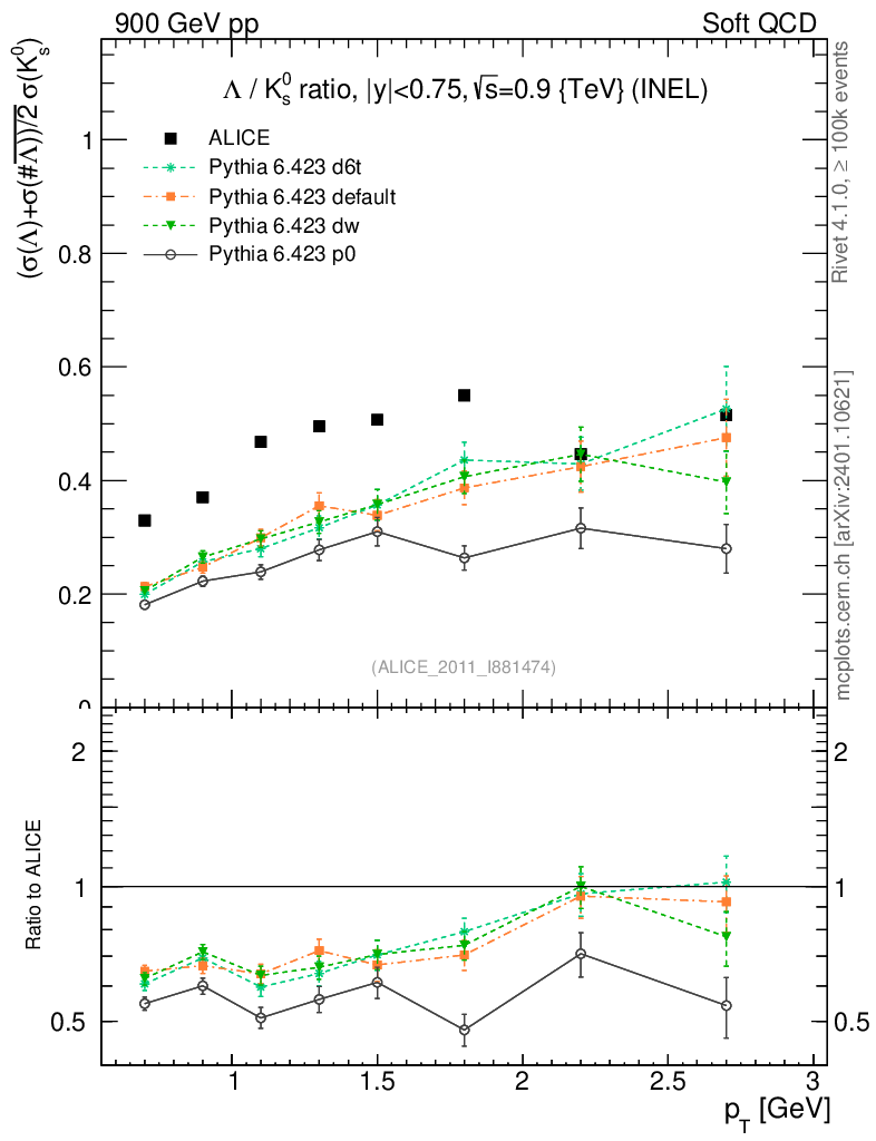 Soft QCD (inelastic) : Identified Particles : Ratios : Λ/K0S vs pT