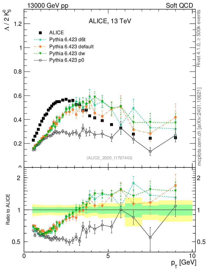 Soft QCD (inelastic) : Identified Particles : Ratios : Λ/K0S vs pT