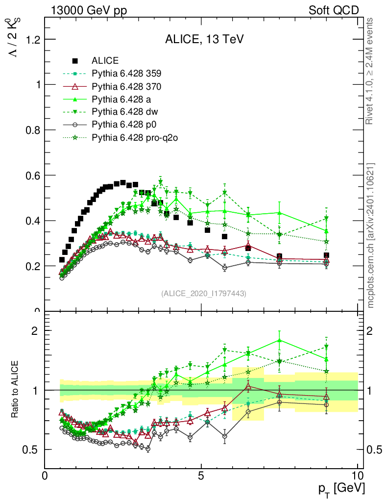 Soft QCD (inelastic) : Identified Particles : Ratios : Λ/K0S vs pT