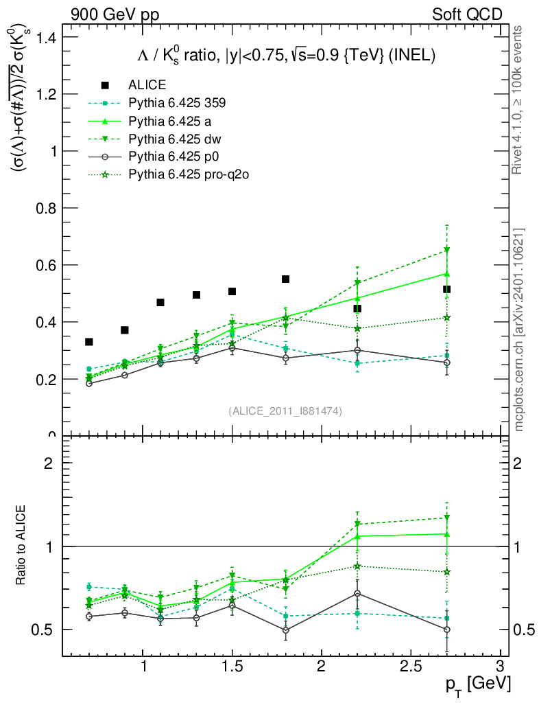 Soft QCD (inelastic) : Identified Particles : Ratios : Λ/K0S vs pT