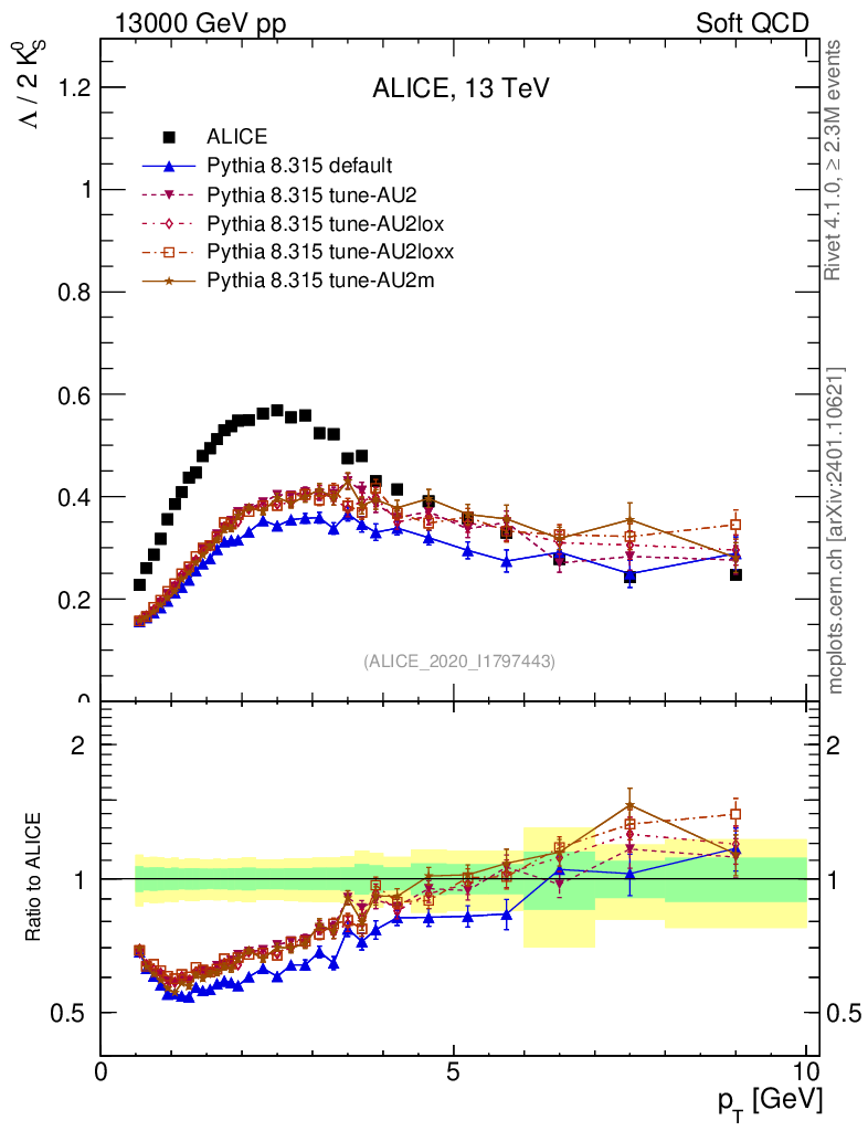 Soft QCD (inelastic) : Identified Particles : Ratios : Λ/K0S vs pT