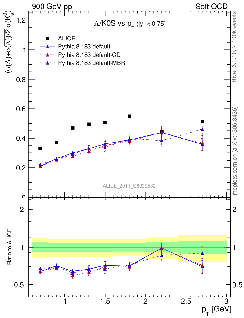 Soft QCD (inelastic) : Identified Particles : Ratios : Λ/K0S vs pT