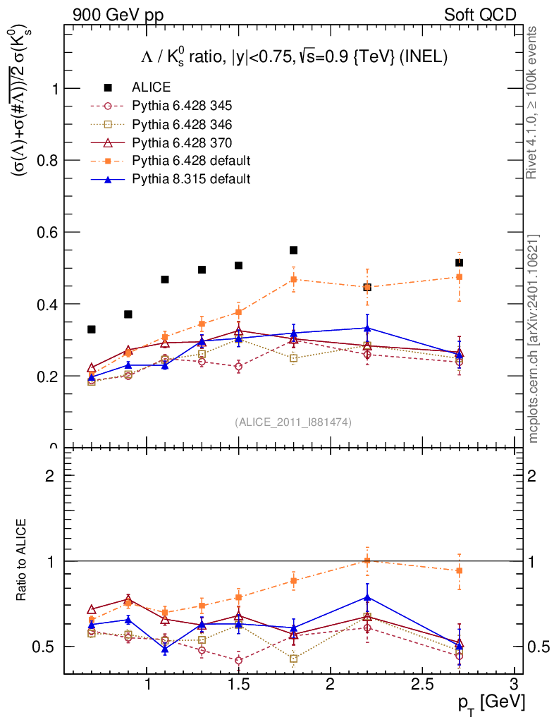 Soft QCD (inelastic) : Identified Particles : Ratios : Λ/K0S vs pT
