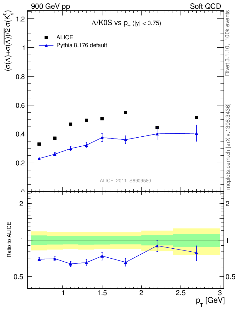 Soft QCD (inelastic) : Identified Particles : Ratios : Λ/K0S vs pT