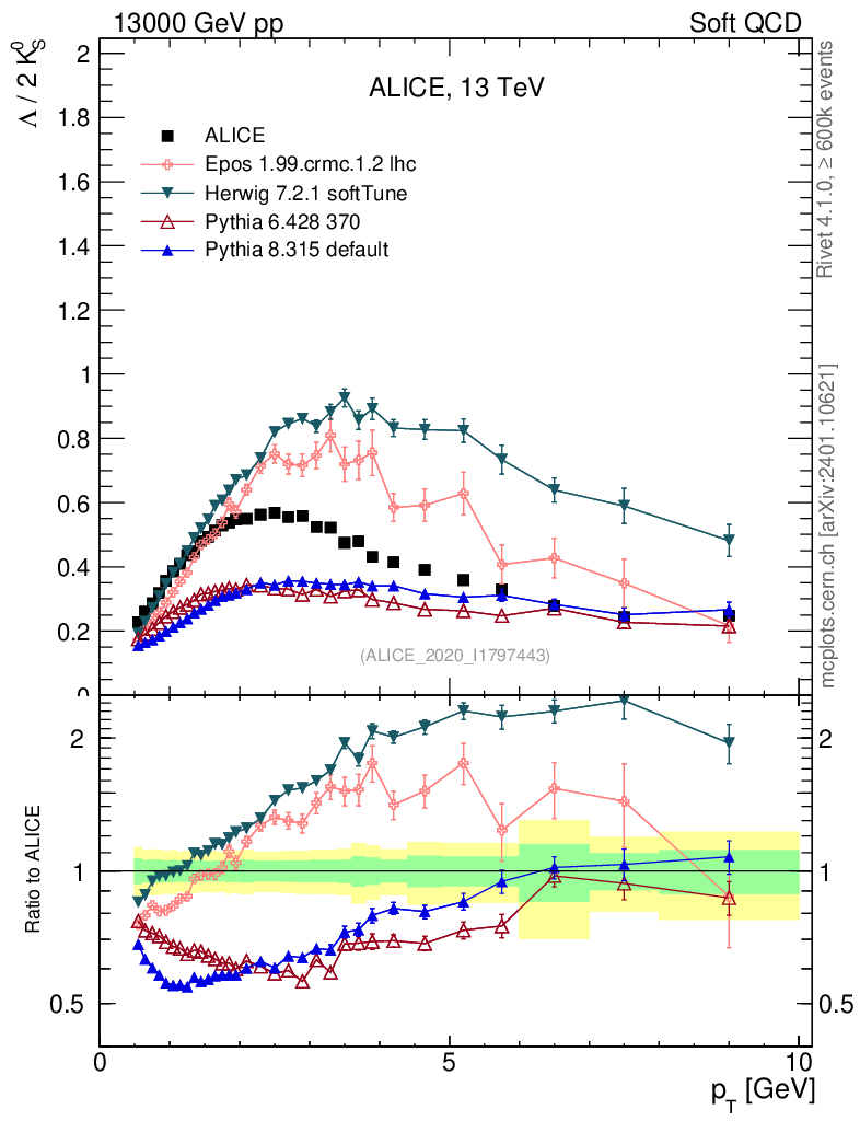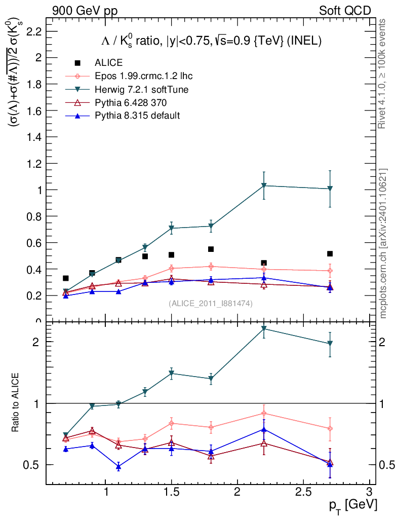 Soft QCD (inelastic) : Identified Particles : Ratios : Λ/K0S vs pT