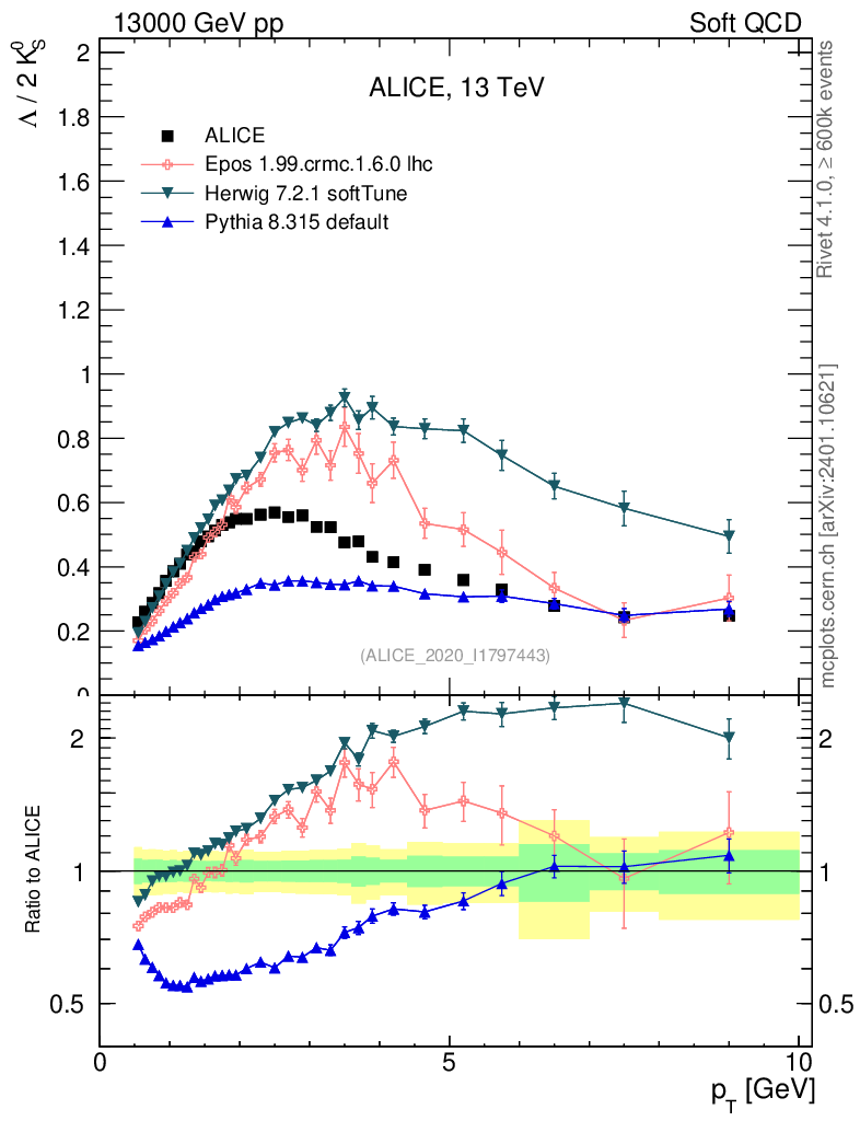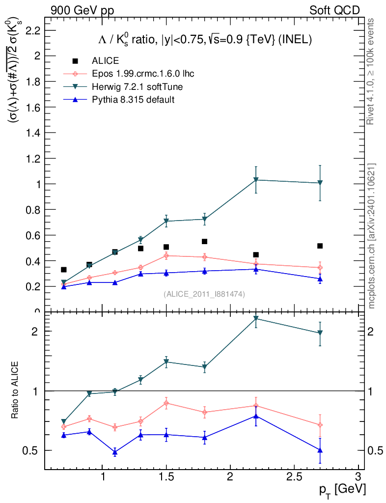 Soft QCD (inelastic) : Identified Particles : Ratios : Λ/K0S vs pT