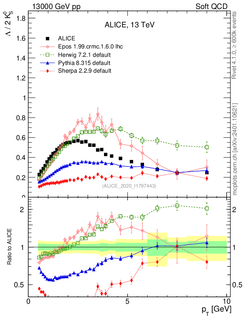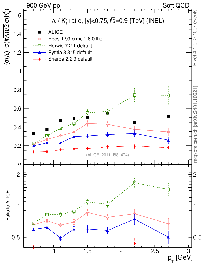 Soft QCD (inelastic) : Identified Particles : Ratios : Λ/K0S vs pT