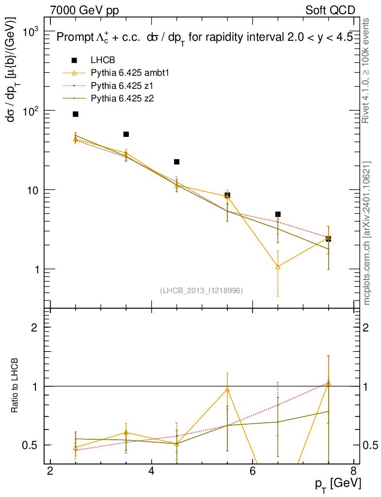Soft QCD (inelastic) : Identified Particles : pT : Λc+