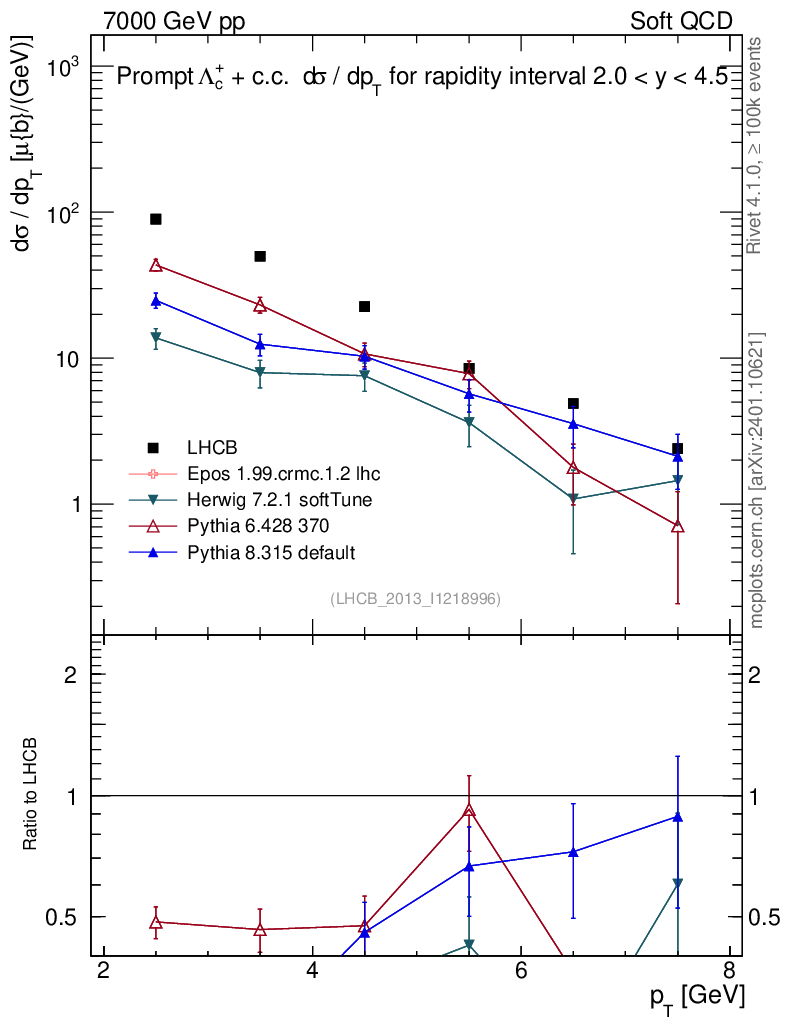 Soft QCD (inelastic) : Identified Particles : pT : Λc+