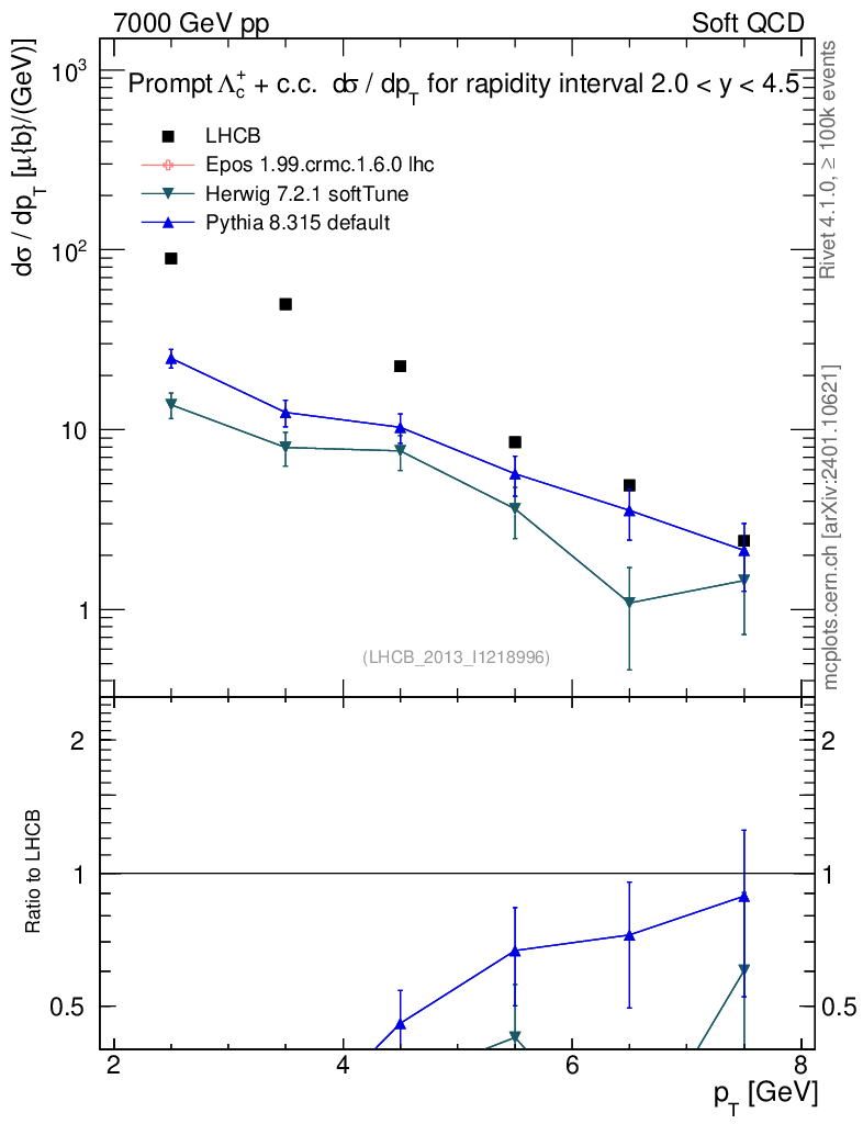 Soft QCD (inelastic) : Identified Particles : pT : Λc+