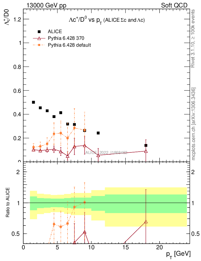 Soft QCD (inelastic) : Identified Particles : Ratios : Λc+/D0 vs pT
