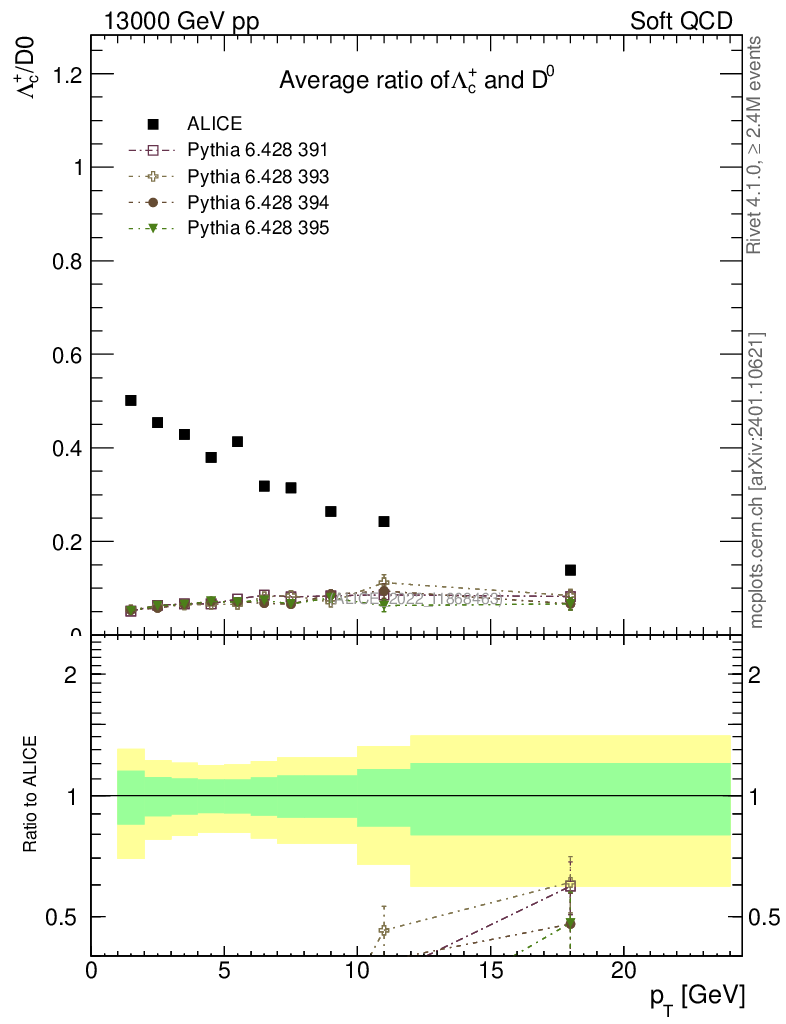 Soft QCD (inelastic) : Identified Particles : Ratios : Λc+/D0 vs pT
