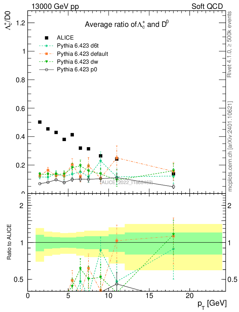 Soft QCD (inelastic) : Identified Particles : Ratios : Λc+/D0 vs pT