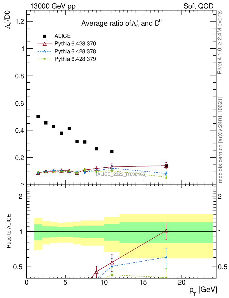 Soft QCD (inelastic) : Identified Particles : Ratios : Λc+/D0 vs pT
