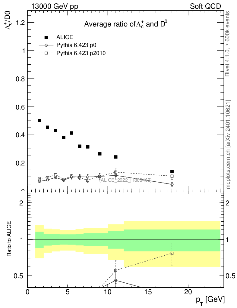 Soft QCD (inelastic) : Identified Particles : Ratios : Λc+/D0 vs pT