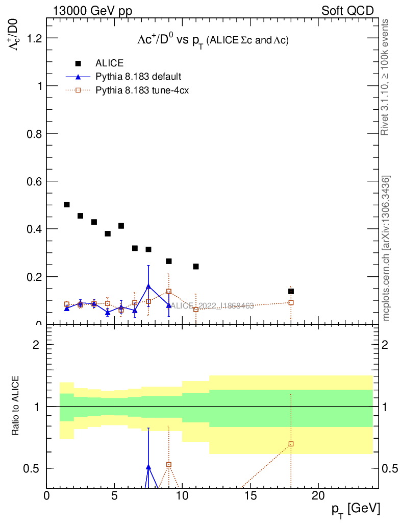 Soft QCD (inelastic) : Identified Particles : Ratios : Λc+/D0 vs pT