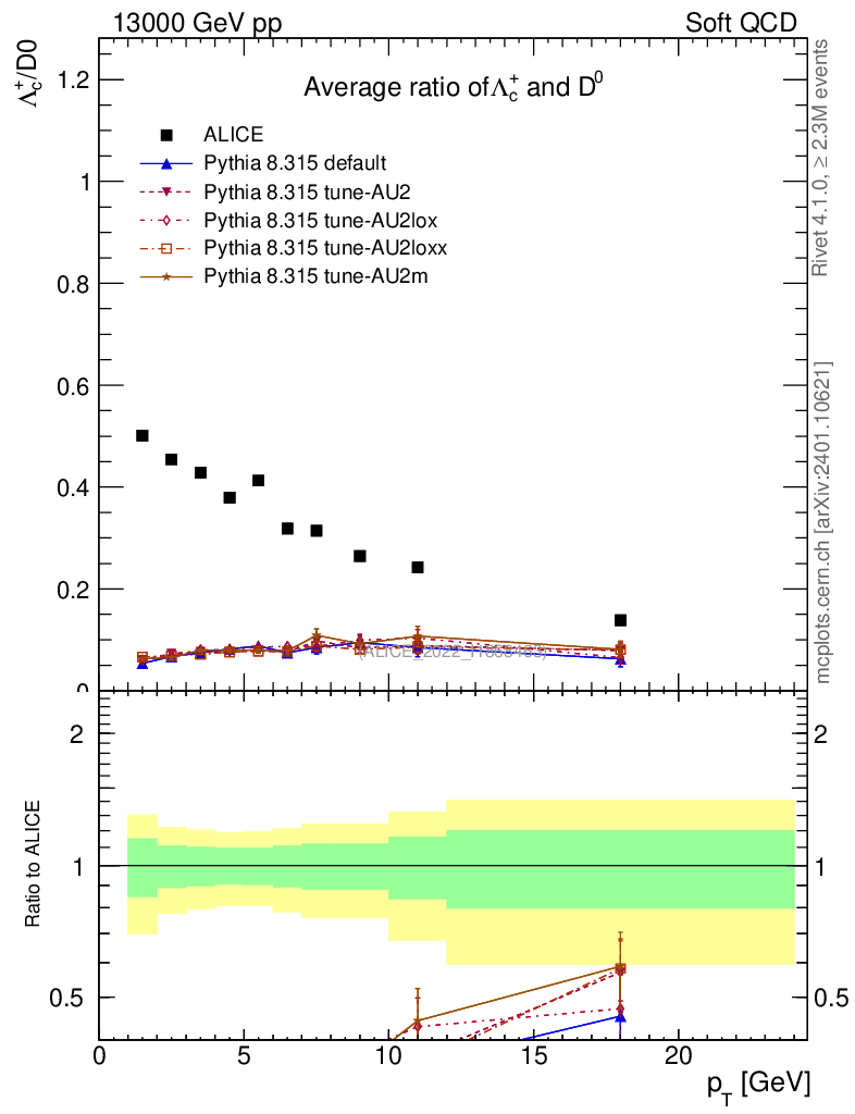 Soft QCD (inelastic) : Identified Particles : Ratios : Λc+/D0 vs pT