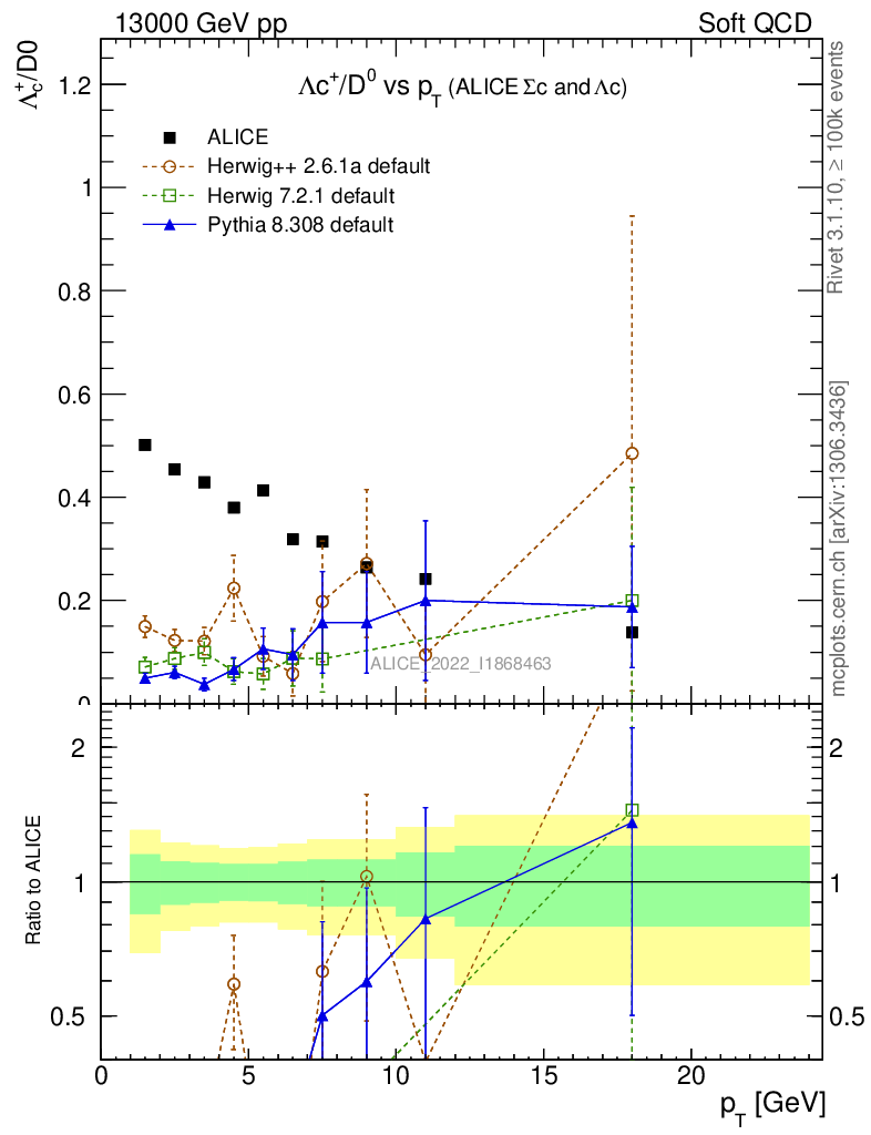 Soft QCD (inelastic) : Identified Particles : Ratios : Λc+/D0 vs pT