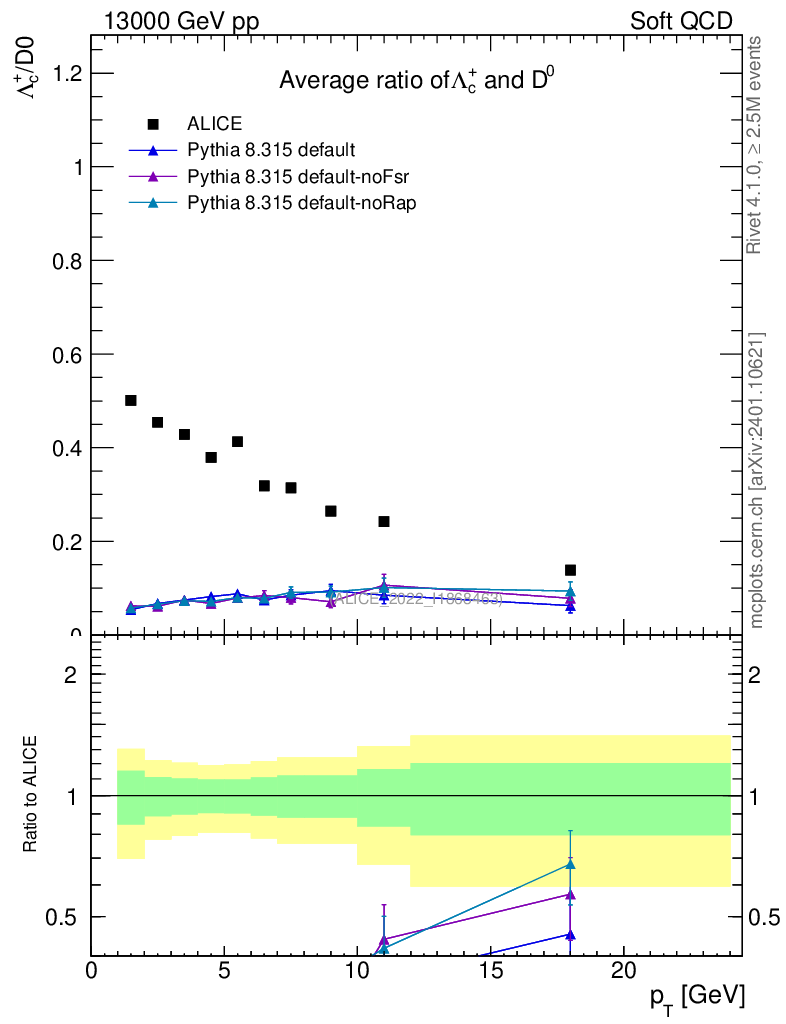 Soft QCD (inelastic) : Identified Particles : Ratios : Λc+/D0 vs pT