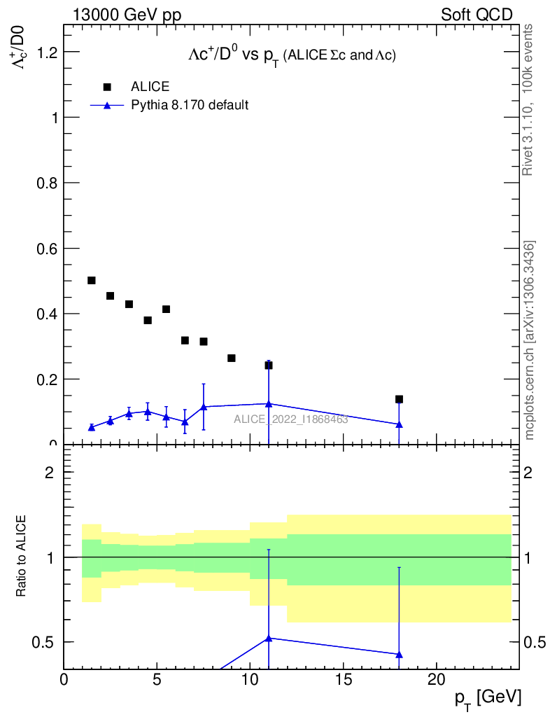 Soft QCD (inelastic) : Identified Particles : Ratios : Λc+/D0 vs pT