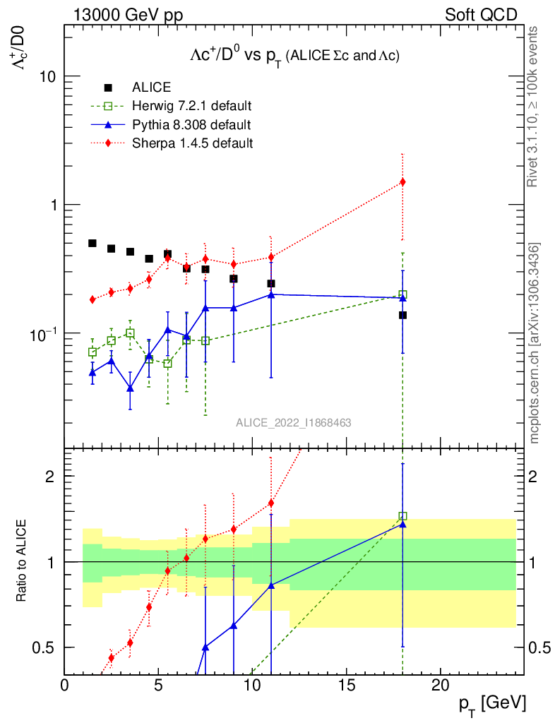 Soft QCD (inelastic) : Identified Particles : Ratios : Λc+/D0 vs pT