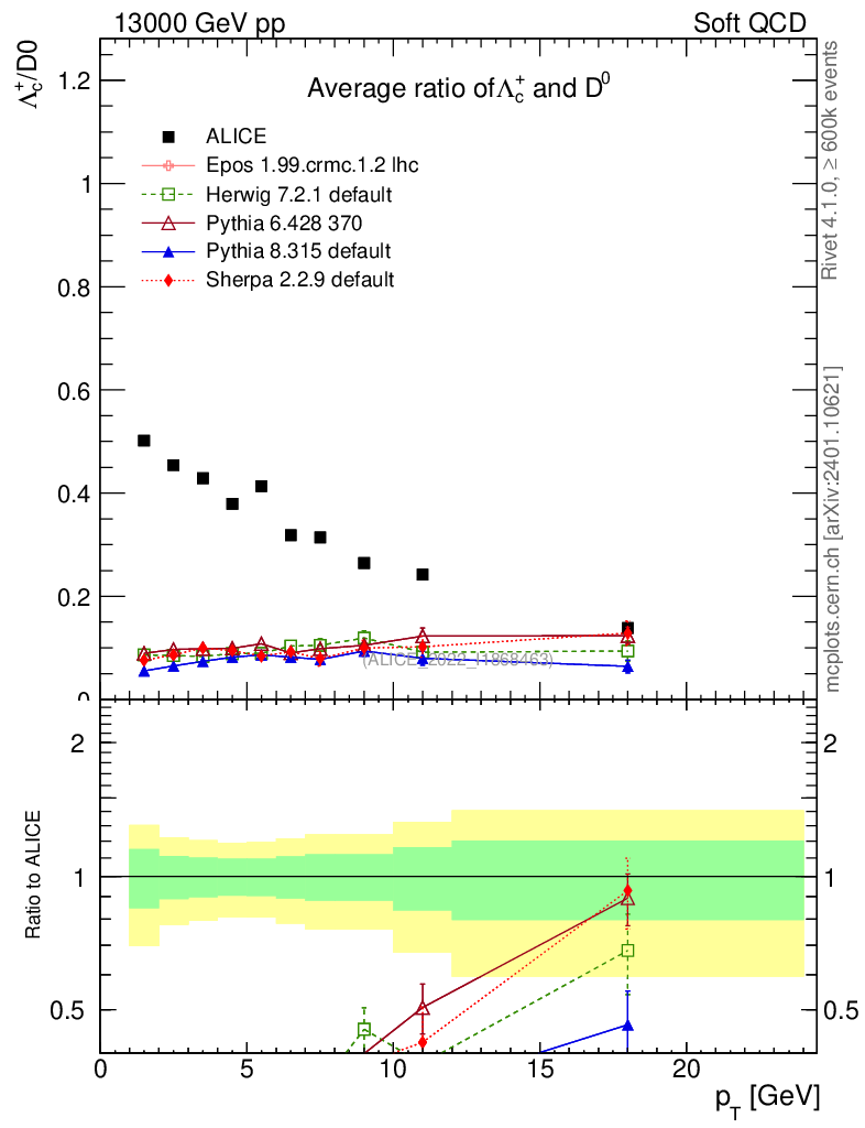 Soft QCD (inelastic) : Identified Particles : Ratios : Λc+/D0 vs pT