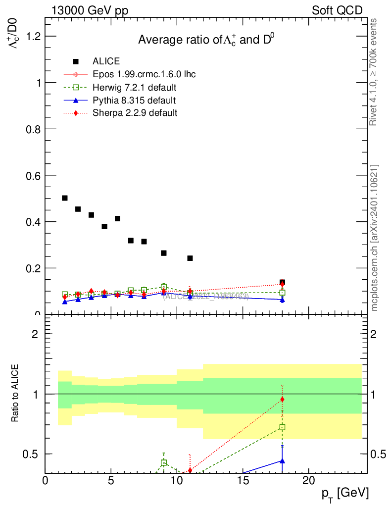 Soft QCD (inelastic) : Identified Particles : Ratios : Λc+/D0 vs pT