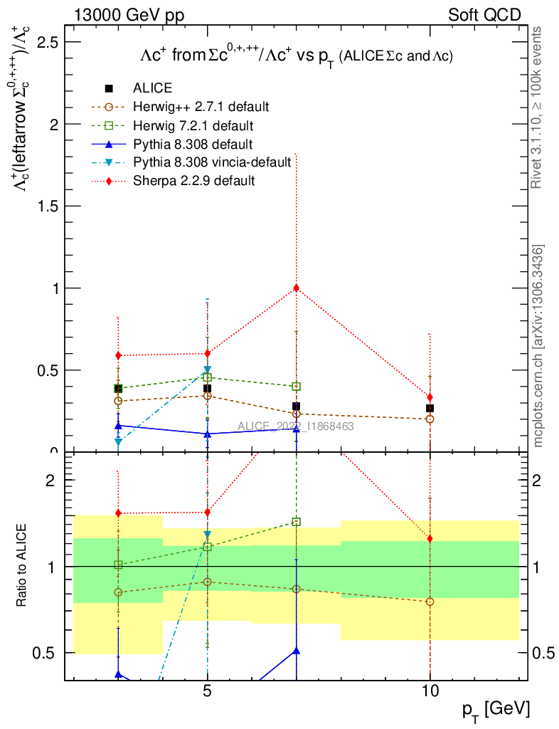 Soft QCD (inelastic) : Identified Particles : Ratios : Λc+ from Σc0,+,++/Λc+ vs pT