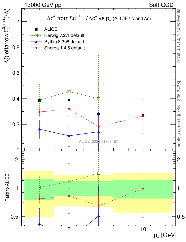 Soft QCD (inelastic) : Identified Particles : Ratios : Λc+ from Σc0,+,++/Λc+ vs pT