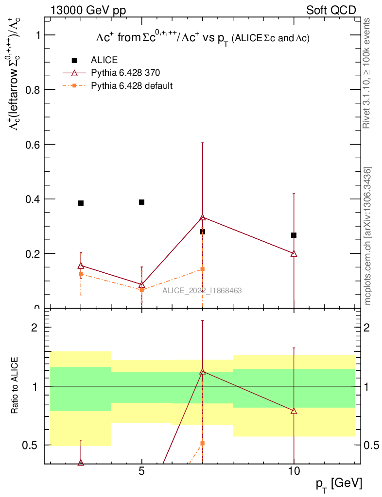 Soft QCD (inelastic) : Identified Particles : Ratios : Λc+ from Σc0,+,++/Λc+ vs pT