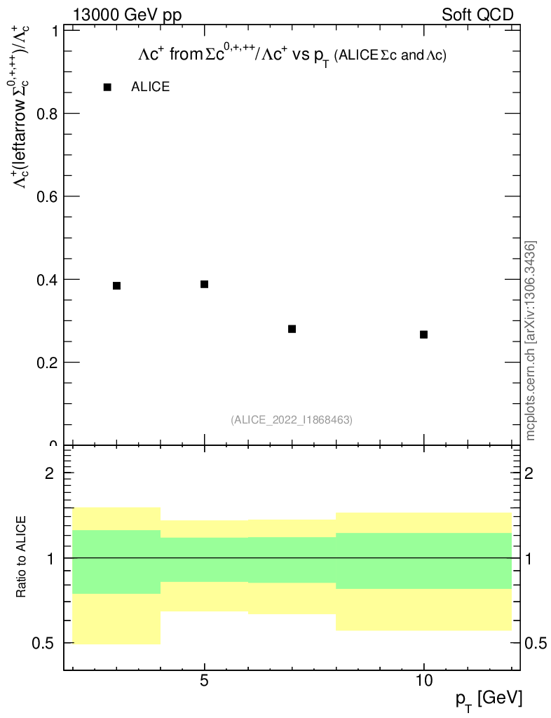 Soft QCD (inelastic) : Identified Particles : Ratios : Λc+ from Σc0,+,++/Λc+ vs pT