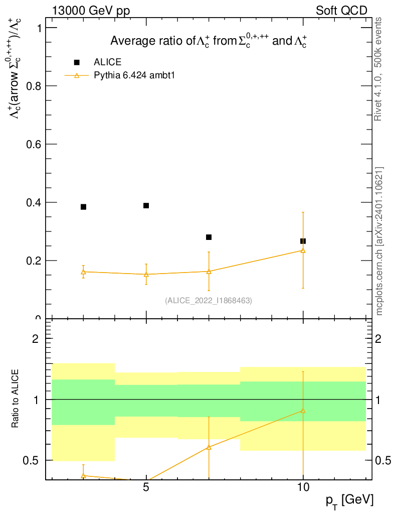 Soft QCD (inelastic) : Identified Particles : Ratios : Λc+ from Σc0,+,++/Λc+ vs pT