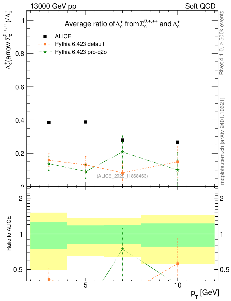 Soft QCD (inelastic) : Identified Particles : Ratios : Λc+ from Σc0,+,++/Λc+ vs pT