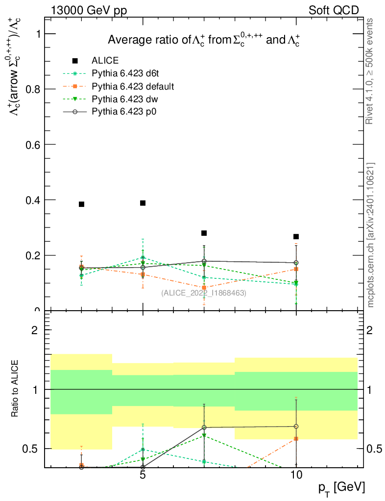 Soft QCD (inelastic) : Identified Particles : Ratios : Λc+ from Σc0,+,++/Λc+ vs pT