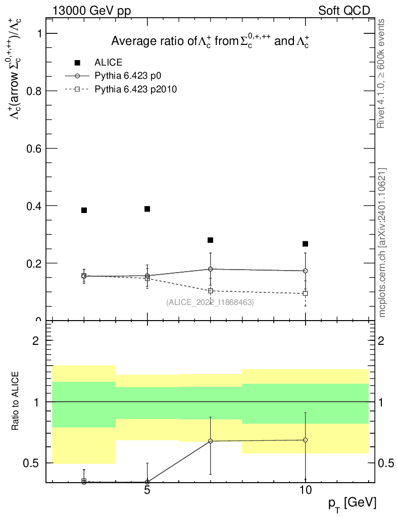 Soft QCD (inelastic) : Identified Particles : Ratios : Λc+ from Σc0,+,++/Λc+ vs pT