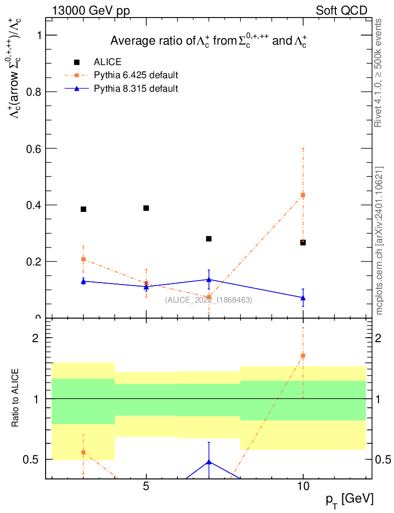 Soft QCD (inelastic) : Identified Particles : Ratios : Λc+ from Σc0,+,++/Λc+ vs pT