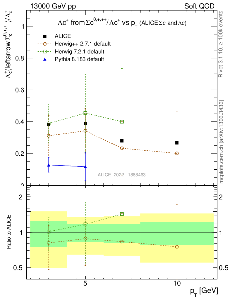Soft QCD (inelastic) : Identified Particles : Ratios : Λc+ from Σc0,+,++/Λc+ vs pT